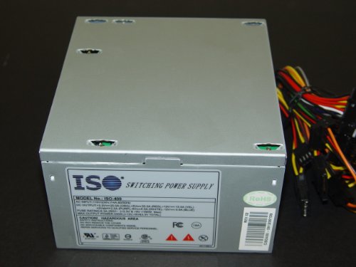 - MODEL No.:ISO-400; AC INPUT:115V/230V,8/5A,60/50HZ; DC OUTPUT:+3.3V=20.0A(ORG),+5V=30.0A(RED),+12V=15.0A(YELLOW),+5Vsb=2.0A(PURP),-5V=0.5A(WHITE),-12V=0.5A(BLUE)